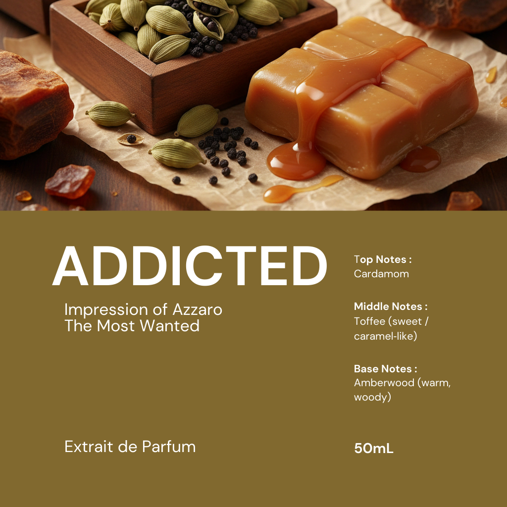 Addicted by Kochyan is a bold, warm, and highly addictive fragrance inspired by Azzaro The Most Wanted. It opens with a spicy and energetic blend led by ginger and cardamom, creating a powerful first impression. As the fragrance develops, rich gourmand notes add sweetness and depth, giving the scent a smooth and seductive character.